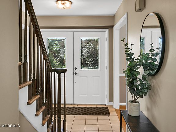 Spacious Colonial with Classic Charm and Room to Grow. Welcome to this well-kept Colonial offering nearly 2,400 square feet of living space, featuring 4 bedrooms, 2.5 baths, and a 2-car garage. A double-door entry opens to a warm and inviting foyer. The main level includes a light-filled living room with hardwood flooring, and a formal dining room adorned with wood floors, chair rail molding, and a decorative chandelier—each room distinct yet equally charming. The eat-in kitchen is equipped with tall cabinetry, recessed lighting, and space for dining. The heart of the home is the Great Room, featuring vaulted ceilings with a wood beam, ceiling fan, skylight, and recessed lighting. A full brick accent wall with a fireplace and wood mantle adds warmth and character to the space. Sliders open to a screened-in sunroom with a ceiling fanan ideal spot to unwind and enjoy the outdoors during the warmer months.