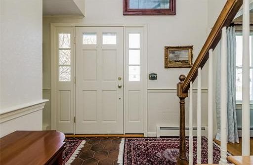 Spacious and well maintained custom built Colonial with 5 bedrooms and 3.5 baths located on a quiet cul-de-sac abutting conservation land. Many recent updates including newer Hardy Board siding and insulation, windows, central AC, some appliances, garage doors, furnace and hot water tank. Built in 1979, this home features everything that today's buyer wants. The first level has an eat-in kitchen, adjacent family room with cathedral ceiling, fireplace and access to the outside deck, an elegant dining and living room with fireplace and powder room. The second level has 4 spacious bedrooms and 2 full baths including an enormous Master Suite. The lower level has a guest suite with bedroom and full bath, workshop and laundry facilities. Enjoy spectacular views of Whittier Pond reserve and privacy from the fully fenced yard and 2 outdoor decks. Includes a 4 car (yes…that is "4" car) garage.