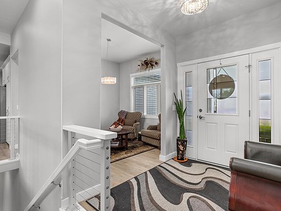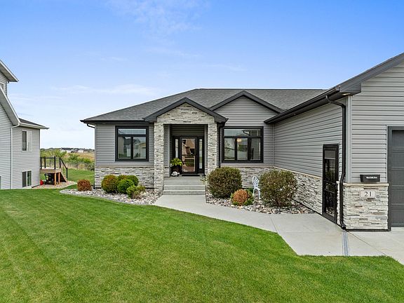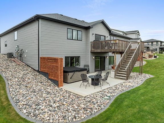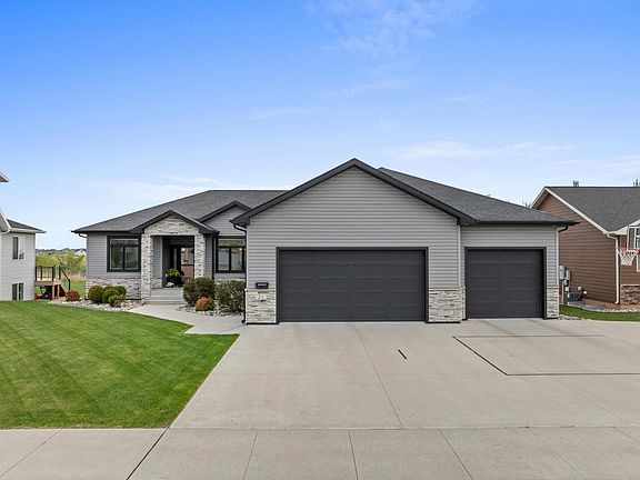 Stunning sprawling 5-bedroom, 2 3/4 bath, ranch-style home over 3,700 square feet, 1,892 on each level, which features a breathtaking view of Minot’s treed rolling prairie hills and the outstanding fairways of Minot’s Beowulf Golf Course, overlooking tee box number 10. This elegant home offers the perfect mix of luxury, comfort, and space for everyone to work, play, and relax. Upon driving up onto the very large driveway with its own RV/boat parking space, you will stop to admire the beautiful stone-covered entrance, and once you step inside, you will be welcomed by a flowing open split concept design. The living room features 10-foot ceilings, a lovely stone electric fireplace, and large windows to enjoy the view. The casual and formal dining area (the formal dining area sure could be used as a study, music area, or a den). The heart of the home is the large kitchen island with a large sink that seamlessly connects the kitchen to the living and dining areas. The standout modern kitchen features quartz countertops, white flat panel cabinetry with coordinating thermofoil on the lower, white trim throughout the home, and Carrara marble backsplash. Don’t miss the huge hidden walk-in pantry with tons of shelves. Step out onto your deck with its oversized sliding door with custom-made Hunter Douglas blinds to enjoy your morning coffee with attractive landscaping, underground sprinklers, and drip line for the bushes and plants with its concrete colored curbing. Walk down and enjoy the fire pit area, plenty of room for pets, gardening, or simply enjoying the view of the fairway. This home boasts a three-stall attached heated garage with numerous upscale upgrades, including two floor drains and epoxy flake flooring. The main floor primary suite includes a spa-style soaking tub, dual sinks, a separate large tiled walk-in shower, and a sizable walk-in closet—just what you would expect from this beautiful home—two other bedrooms on the main floor with a full bath between.   Walking down the lighted staircase to the lower-level walk-out recreation room is perfect for hosting game nights or unwinding after a long day.  Enjoy the great outdoors from the walk-out basement, where you can gaze out or gather in peaceful surroundings. Plus two more nice-sized bedrooms with daylight windows and a 3/4 bathroom. Whether you're watching the golfers or simply soaking up the quiet neighborhood vibes, this home offers the best of both worlds- privacy and scenic beauty. This is more than just a house—it's a lifestyle. Don't miss your chance to make it yours.