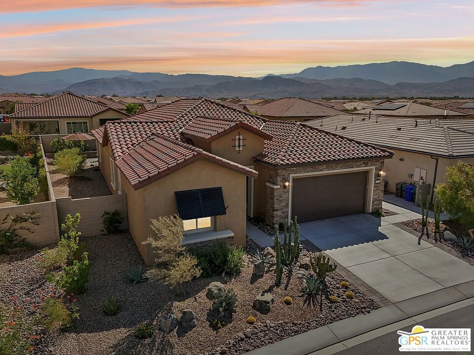 REFUGE, PLAN 7 PHASE 5 Prairie Facade with OWNED SOLAR. Thoughtfully upgraded 2 bedroom, 2 and a HALF BATH home with DEN offers 12"x24" tile and custom shutters throughout. Open concept living, dining and kitchen areas. Kitchen has a large island and features upgraded cabinetry with soft close and 42" uppers with crown molding, upgraded quartz countertops with leather finish and full backsplash, and stainless appliances. Living area offers 5.1 Channel Surround Sound and center open dual sliding doors that open out to a large professionally landscaped yard with full brick patio and beautiful stoned planter wall with accent lighting complete with built-in BBQ and mountain views! Inside you'll find an inviting primary suite with tray ceiling and large ensuite bath with roll in shower with bench, dual vanity with quartz counters and upgraded modern fixtures and hardware. You'll find plenty of storage space in the expanded laundry room with washer and dryer, and ample shelving for your goods and wares. This home features a 2.5 car garage with water conditioner, mini split, 220 plug and plenty of space for a workshop or large vehicle. Come see all Del Webb has to offer including a clubhouse with pool, spa, fitness center, tennis, pickleball, and more!