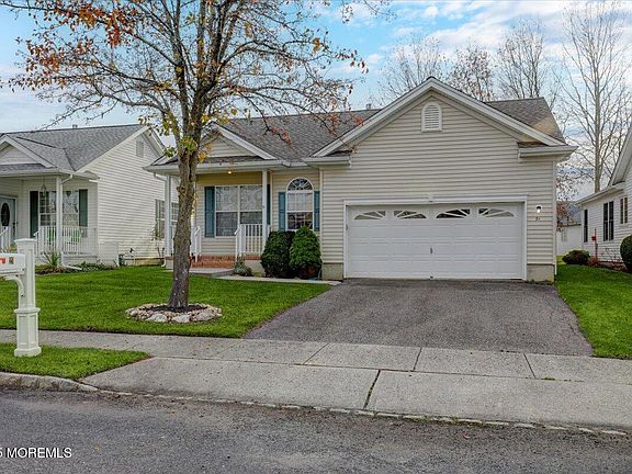 Wedgewood Place • Deck off kitchen • Hardwood floors in kitchen• Full basement • Roof 3 years old • Hot water heater 1 year old. Set in the 55+ community of Wedgewood Place, this 2 bedroom, 2 bath home offers comfortable single-level living in a convenient Brick location. The layout brings together a bright living and dining area, a kitchen with Corian counters, pantry storage, and hardwood floors, plus a slider leading to the deck. The primary bedroom includes a walk-in closet and a private bath with a double vanity. A full basement adds valuable storage or project space, and the attached two-car garage provides easy access. Recent updates include a roof installed about 3 years ago and a hot water heater replaced last year. Community amenities feature a clubhouse with fitness and social spaces, billiards, library, pool, tennis, bocce, and shuffleboard. Parkway access, grocery, dining, and retail options are all nearby at 21 Shelley Road.