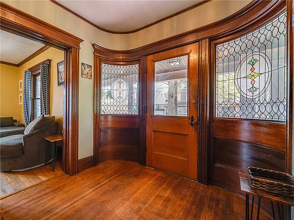 Welcome to this impressive, Victorian, 4 bedroom home with stunning curb appeal and remarkable front porch. This home features natural woodwork trim, hardwood floors and stunning light fixtures throughout. You enter through an remarkable foyer with unique door and stained glass side windows that lead to the large living room with a bay window and window seating. There is a gorgeous formal dining room with another bay window and sparkling chandelier and the huge kitchen with an abundance of counters and custom cabinets. There is also a family room with built in bookshelves, and full bath with washer and dryer completing the first level. The massive wood staircase continues on the natural wood trim and hardwoods and leads to built in cupboards at the top of the stairs and the 4 good-sized bedrooms, an office with the 3rd bay window, a full bath and an entire attic for lots of storage or easy to finish for an additional room. The backyard is fully fenced in and includes a Koi pond and an extra building for additional living space that makes a wonderful get-a-way for a sitting room or a potential mancave. This home is one-of-a-kind! Delayed negotiations until Monday 5/8 4pm.