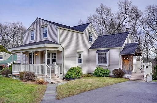 Wonderful 3-4 bedroom 2 ?? bathroom Cape with inviting farmer???s porch located in great neighborhood! The first floor offers large eat-in kitchen with oak cabinetry that opens into family room w/wood stove, beamed ceiling and slider to back deck, spacious formal dining room, living room with masonry fireplace, 1st floor bedroom or office with ?? bath, full bath, charming side covered entry, hardwood floors, 2nd floor has 3 good size bedrooms, full bath with double vanity, built-ins & lots of closet space. Partially finished lower level game room, laundry and utility room with space for work shop, walk-out to back yard, additional outside dry storage under deck, replacement windows, newer Buderus boiler & hotwater tank. Great commuter location! Close to East Millbury Park for family fun! A must see!