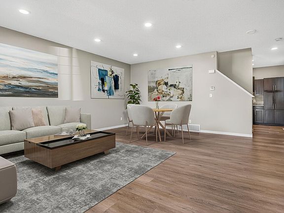 Welcome home to this beautifully updated end unit townhome located in the highly desirable community of Sienna! Boasting over 1,500 sq ft of stylish living space, this home offers comfort, convenience, and exceptional value. Step inside a bright and open concept to find BRAND NEW LVP flooring, carpet, and fresh paint throughout! The kitchen offers plenty of cabinet space with SS appliances & the layout ensures plenty of natural light & a welcoming atmosphere. A half bath completes the main. Upstairs you'll find 2nd floor laundry, primary bath w/ DUAL SINKS & 3 spacious bedrooms including a massive primary suite featuring a private 4 pc ensuite & exclusive access to the GARAGE TOP PATIO, perfect for morning coffee or evening relaxation.The FINISHED BASEMENT adds so much more versatile living space – ideal as a rec room, media room, or games area, pre-wired for a PROJECTOR & SURROUND SOUND speakers for your future HOME THEATRE! Steps away from South Pointe school(K-9) and many major amenities!