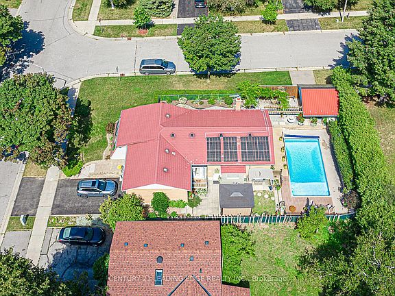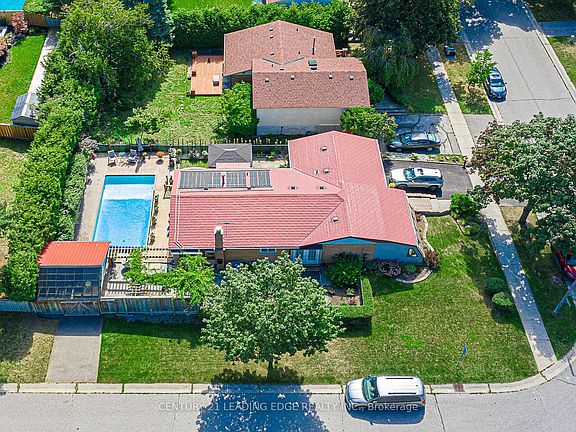 Opportunity knocks in the highly sought after, family friendly, Old Markham Village neighbourhood! Situated on a corner lot and nestled into a quiet street, this bungalow offers an added sunroom with floor to ceiling windows, updated windows, a fully finished basement and an upgraded kitchen with granite countertops, stainless steel appliances, a walk in pantry and a mobile kitchen island. The backyard boasts a solar heated in ground swimming pool, a large deck, and a second driveway/carport (off Sir Caradoc) . The metal roof provides durability and peace of mind. This home is brimming with character and needs to be seen !