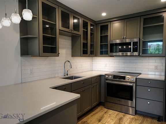 Complete interior rebuild! Unlike any other Hill Condo! All interior walls taken down to the studs, upgraded 100 Amp Electric service installed, new plumbing, spray foam insulation throughout. Quiet Rock drywall and solid wood doors, LED lighting throughout, Jeld-Wen double hung windows, Bradford 50 gallon high efficiency hot water heater, Bridger Peak laminate flooring, new electric baseboards and cadets, plus bathroom in-floor electric heat. Plywood cabinets with dovetail drawers, Carrara marble in bathroom and quartz countertops throughout condo. All new Kohler fixtures throughout, 30" stainless kitchen sink, GE laundry center (fully vented, not a heat pump) 3.8 Cu. Foot washer on top of a 5.9 CU FT dryer, custom roller shade, stainless Bosch appliances (800 Series 30" Range, Microwave 24" and refrigerator. Big Sky Build project, views of Spanish Peaks and Lake Levinsly, southern exposure. Partially furnished with designer window treatments. King sized bed, plus sleeper sofa, some small kitchen appliances, bedding, linens, dishes etc included. In beautiful move-in condition!