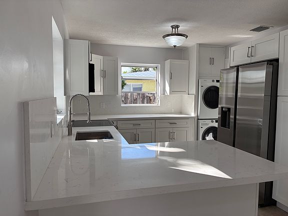 This is a beautiful 3 bedroom and 2 bath concrete home. This home has been completely renovated. The house has a new kitchen with new appliances including washer and dryer. The stove has a built in air fryer, dishwasher, fridge and microwave.