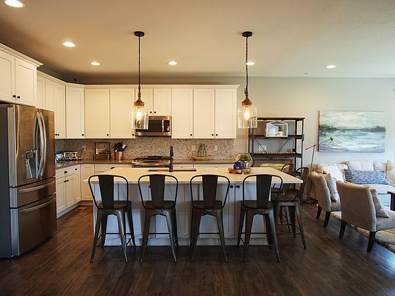Oversized tile showerStainless steel appliancesQuartz countertopsCovered paver patioBuilt-in adjustable desksPlenty of storage spaceOpen floor plan