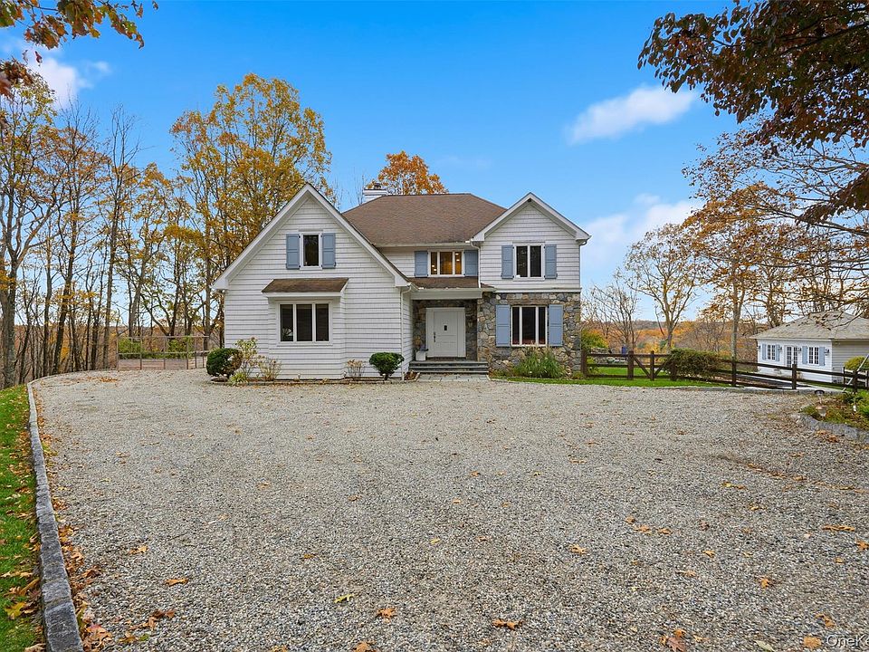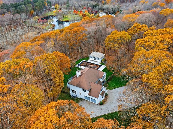 Stunning retreat backing onto Ward of Pound Ridge Reservation. Spanning almost 9 acres, with interconnecting trails to both BRLA and Ward this charming colonial is not to be missed. Tall ceilings, and expansive windows highlight the forest below, while bathing rooms in natural light. The primary bedroom in includes a large en-suite, and dreamy walk in closet while the home offers plenty of flex space throughout. The exterior includes a newly redone pool, and pool house/guest house featuring: two bedrooms, a kitchenette, and full bath (with it's own entrance from the pool). This home also has a newly installed, full house generator that automatically covers the home and guest house/pool! If you have been looking for privacy, and a connection to nature- this is a must see!