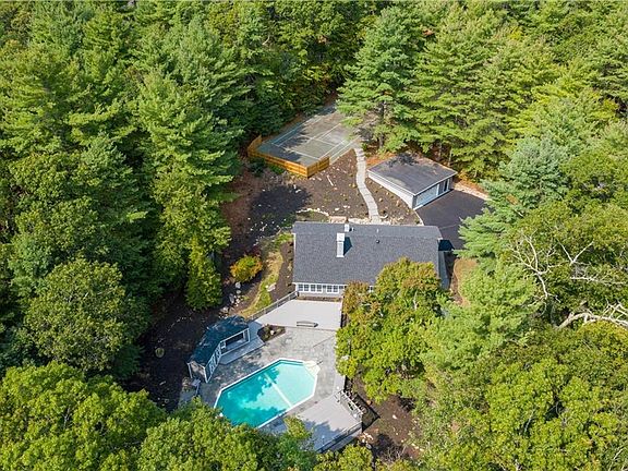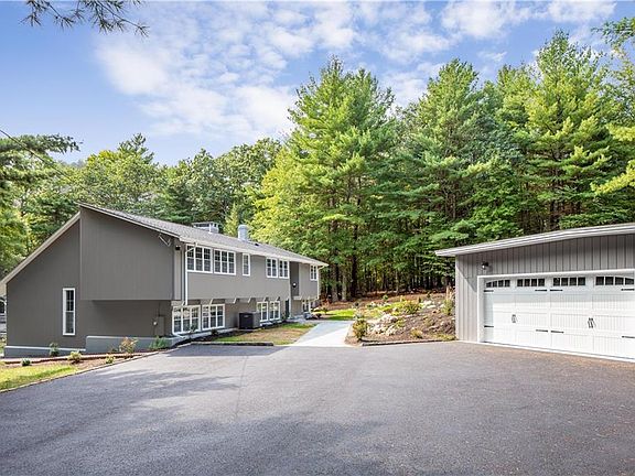 Looking for that truly unique place to call home? Welcome to 21 Sprucebrook Rd! This 1975 solid & well built, modern home offers all of the updates of todays new construction and more! Featuring a reverse floor plan with main living space on lower level. Open kitchen, dining & living space with soaring, vaulted, wood beamed ceilings, abundant windows, double sided floor to ceiling brick hearth and 10' white quartz kitchen island are some of the highlights in this beautiful renovated home. Offering 3-4 bedrooms, and 3 full baths. Updates include, new roof, windows, boiler, hot water heater, A/C, water filtration system, well pump, exterior paint, interior paint, kitchen cabinets, flooring, lighting & doors throughout. All new bathrooms: cabinetry, tile, counters & fixtures. All new, higher end stainless appliances including a wine cooler for those who love to entertain! Spacious rooms with master bedroom suite. This property provides a 1.3 acre lot, 2 car detached garage w/ new door & door lift, new driveway & slate walkway. An in-ground pool with huge custom decking, changing room & newly updated cabana w/ new cabinets and quartz counter are located just steps away. Finally, for the sports enthusiast family you have your very own tennis court/basketball court or perhaps an ice rink, this is New England after all! All prepped and ready for your personal use & finishing touches, don't miss this opportunity for a one of a kind home!