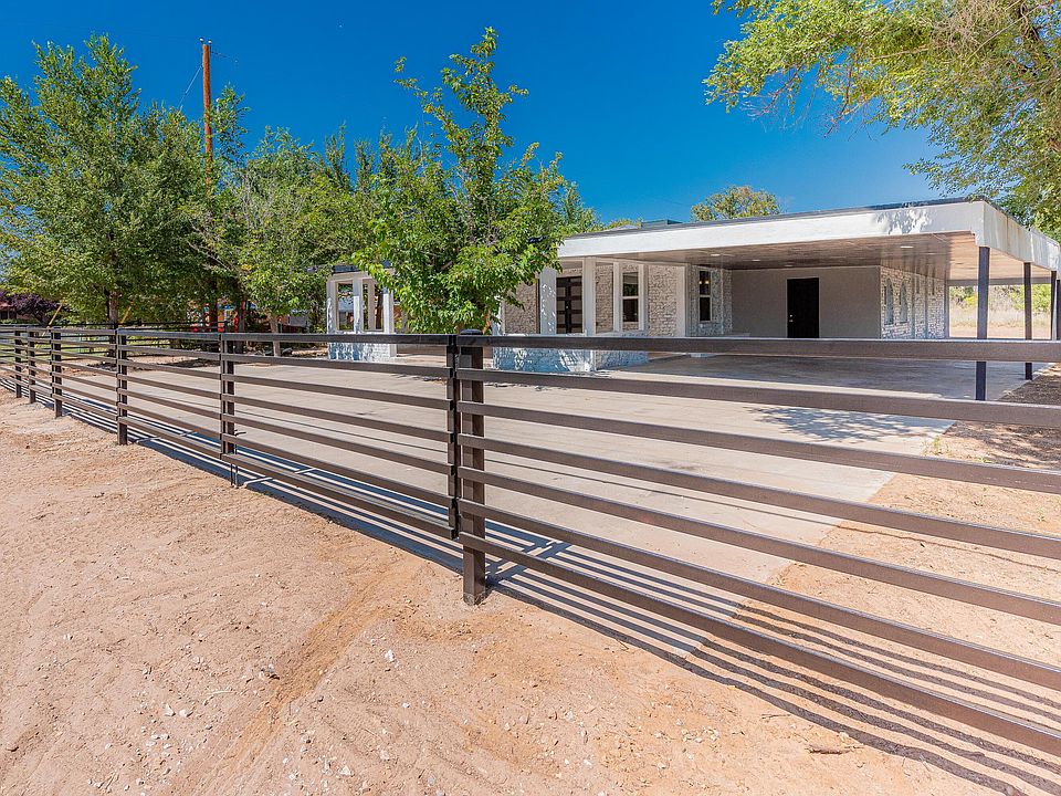 Newly remodeled home in the beautiful Los Chavez community, nice carport with finished wood ceiling, large covered porch and gorgeous inside! Must see!! All new appliances, top of the line finishes, custom front door, Granite, tile, and amazing bathrooms! Refrigerated air! Custom gate around front of property. Bonus room could be second living space, formal dining room or hobby room. All of this sitting on almost 3/4 acre of Horse property land.