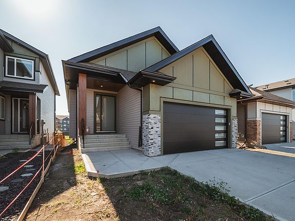 The Wait is Over! Stunning Brand-New Walkout Bungalow built by Spectrum Homes backing the POND! This luxurious home showcases high-end finishes, exceptional craftsmanship, and elegant design throughout. Featuring 10-foot ceilings and 8-foot doors, it offers a grand and open feel. The chef-inspired kitchen boasts a double waterfall island, full matching quartz backsplash, and built-in upgraded stainless steel appliances. The open-concept living area is warm and inviting, with spectacular pond views. The massive primary suite is a true retreat with a spa-like five-piece ensuite and a spacious walk-in closet. An additional bedroom, bathroom, and laundry complete the main floor. Upstairs features a BONUS ROOM with a fireplace and bar! Perfect for entertaining. The fully finished basement offers even more space, with 2 additional bedrooms, a full bath, a wet bar, and a large rec room. Located in a prime area close to shopping, schools, and amenities, this home is a rare opportunity. Don’t miss out!