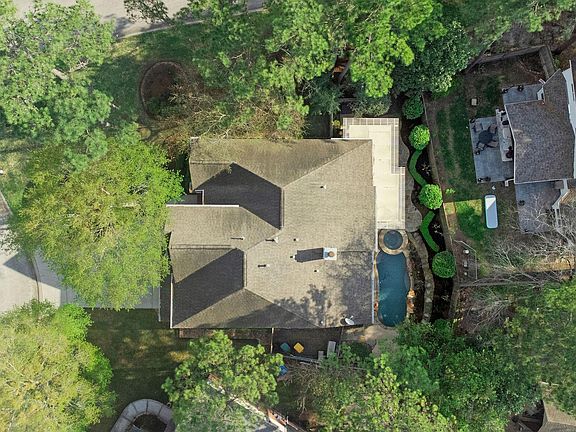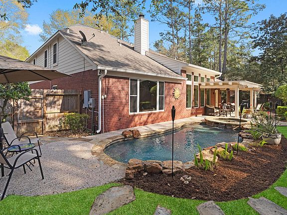 Wonderful updated home on a quiet corner cul-de-sac lot. Custom saltwater spa and pool with rock waterfalls. Inside you will find arched entryways, vaulted ceilings, and art niches. Kitchen boasts glazed cabinetry, stainless appliances, under-cabinet lighting, and corner pantry. Large breakfast room. Formal dining and office areas have vaulted ceilings. Vaulted family room boasts travertine tile gas log fireplace and recessed nook for electronics. Owner's suite has pool views and en-suite bath with soaking tub, shower, dual sinks, private commode, and large walk-in closet. Upstairs, you will find three bedrooms, full bathroom, game area, and media room. Whole house wired for speakers. Covered porch with firepit and grilling area. Huge 3 car garage with an entire wall of storage cabinets. New since 2020: Remodeled office, Leaf-Guard gutter guards, New downstairs A/C, water heater, whole-house surge protector, some rooms have auto-remote window shades. See our walk-through video online