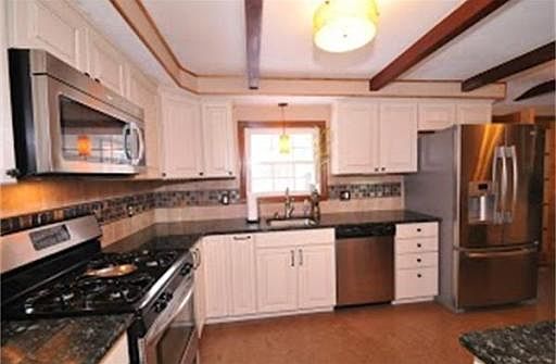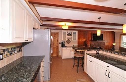 Spacious 8 room, split entry situated on a lovely lot located on the Medway line. Gorgeous state of the art kitchen with granite countertops, island with overhang, tile backsplash and cork floor open to fireplaced living room with new bay window! French doors from kitchen to dining room! Newly remodeled bath with built ins! Large master bedroom and first floor office! Replacement windows! 5 year young septic! Water heater is only 8 months old!