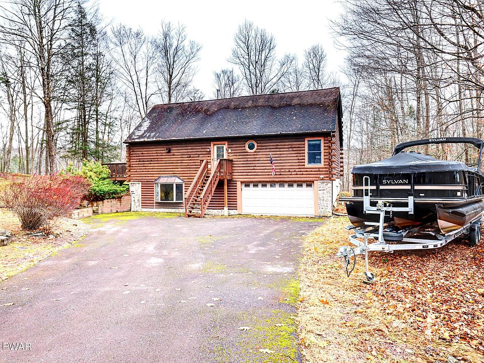 Your secluded Retreat awaits! Nestled within the picturesque Lake Wallenpaupack area surrounded by woods and seasonal lake views, this fully furnished* dream cabin is the perfect blend of rustic charm and modern comfort offering a serene setting for relaxation, weekend getaway or year-round living. Featured are 3 bedrooms of which the exclusive primary suite and private loft encompass the entire upper level, creating a serene sanctuary away from the main living areas. The ultimate flexible floor plan offers two generous main-level bedrooms with full bath, floor to ceiling fireplace evoking a sense of warmth and coziness especially during the snowy winters; open-concept layout with a dramatic, soaring ceiling; impressive views of the outdoors from the family room; and on the lower level, the ultimate entertainment hub - a versatile space perfect for everything from board games, movie nights, ping pong, and Scrabble Board! The ultimate outdoor stage awaits you for al fresco dining and unforgettable gatherings - a sprawling wrap-around deck perfect for entertaining or quiet contemplation. Local opportunities include boating, fishing, swimming, and winter sports.