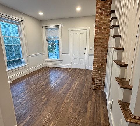 Large bright, newly renovated one bedroom apartment with high ceilings located a short walk over the bridge to downtown Brunswick with seasonal views of the falls. Kitchen features stainless steel appliances and granite countertops with a spacious closet. Half bath features a washer dryer and privacy glazing on the window. Large closet in the primary bedroom and linen closet in the primary bath. Owner pays for heat, water, sewer, snow removal and mowing. Renter's insurance is required. One year lease. Background check, credit check, income verification, and references. Apartment doesn't include electric and wifi. Non-refundable pet deposit in lieu of pet rent. Off street parking for 2 vehicles. Non-smoking property (including cannabis).