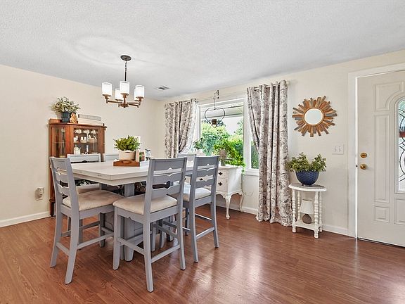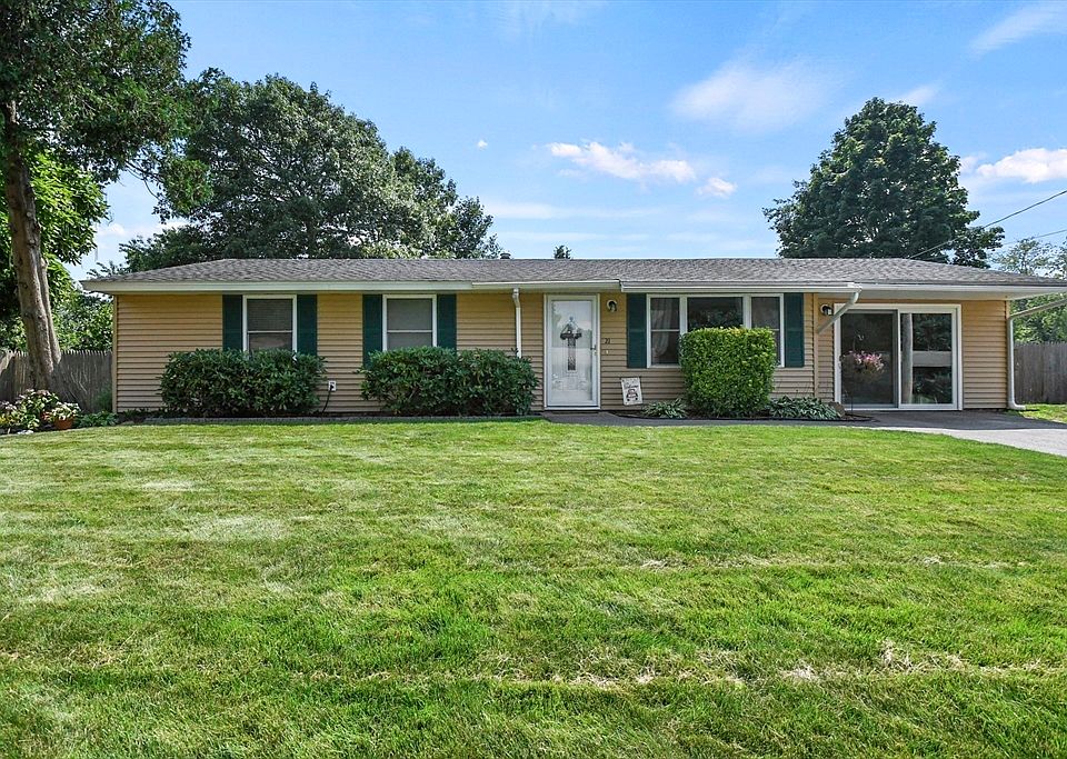 Charming 3-bedroom ranch nestled on a just under quarter acre lot boasting an expansive, fully fenced backyard oasis. Enjoy the outdoors under the covered wood porch complete with a hot tub or gather around the firepit for cozy evenings. A small patio, garden area, and two storage sheds offer added relaxation and convenience. Inside, the dining room shines with a large picture window and elegant chandelier. The kitchen features modern stainless-steel appliances, and a tucked away laundry closet. Relax in the living room with sliders leading to the driveway. 3 good-sized bedrooms complete the package! Recent updates: hot water tank, recessed lighting, added outlets, dining room lighting, bedroom ceiling fans, and 220 electrical for generator and hot tub. A new gate enhances backyard privacy. Roof and furnace replaced within the last 8 years. Don't miss this move-in ready gem!