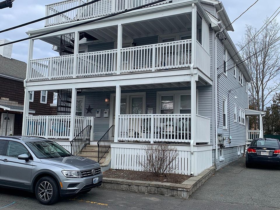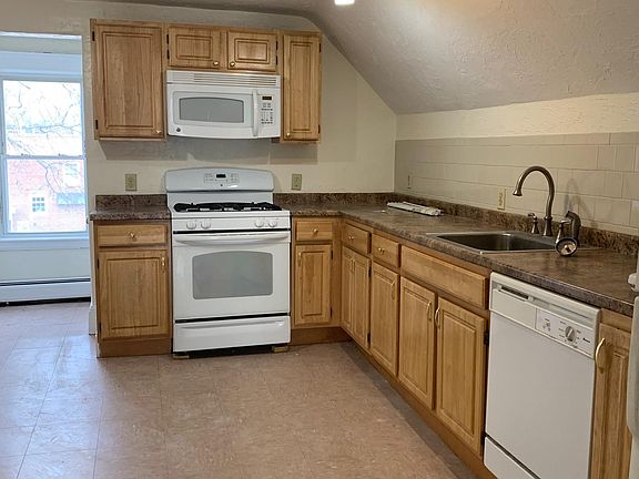 Bright and sunny third floor apartment with large roof deck available in Braintree. This apartment is freshly painted and clean. It has a very large eat-in kitchen with gas stove, refrigerator, microwave, and dishwasher. The bathroom is large and bright with lots of storage. The bedroom and living room have hardwood floors and lots of natural light. There is a large private balcony accessible via sliding doors from the living room. The family owned building has coin-op laundry in the shared basement as well as individual storage lockers. Please call or email to learn more. Heat and hot water included in the rent. Off-street parking for one car included. No smoking property.