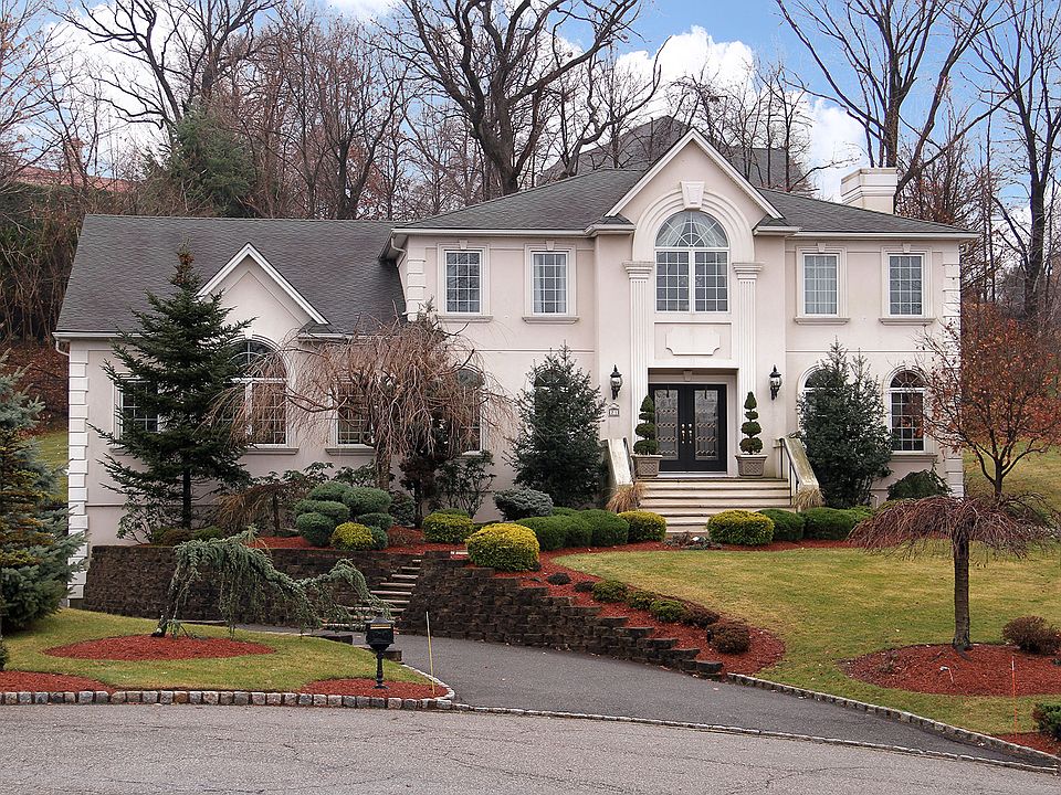 Impressive center hall colonial with park-like property & private yard --at the end of a cul de sac in prestigious Park Ridge Estates! Fabulous open floor plan perfect for entertaining! Expansive kitchen w/center island opens to sunken family room on one side & great room on the other --both rooms feature gas fireplaces; great room offers built-in cabinetry, wet bar, vaulted ceiling. 1st floor bedroom and full bath could be au pair or in-law space. First floor laundry. Generously sized master bedroom with oversized master bath. Huge basement with high ceilings is framed & can easily be finished. Three car attached garage. Bus to NYC at corner and short distance to Little Falls station or Montclair U. station for NYC train service . Pristine --move right in! Terrific Montclair alternative!