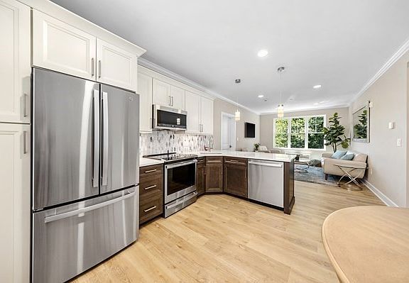 NEW CONSTRUCTION – 1 Bed / 1 Bath Condo at The Derrick Condominiums. Be one of the first to view this beautifully designed 1-bedroom, 1-bath condominium in the brand-new Derrick Condominiums, ideally located just three blocks from Quincy Adams MBTA and major highways (Route 3, I-93, I-95). This spacious unit features an open-concept layout with oversized windows and high ceilings, creating a bright and airy living space. The semi-custom eat-in kitchen includes GE Profile Series stainless steel appliances, two-tone cabinetry with pantry storage, marbled quartz countertops, and a breakfast bar.The large bedroom offers a walk-in closet with custom shelving. The bathroom is finished with luxurious tile and features a glass-enclosed shower with dual shower heads. In-unit laundry hookups, a deeded parking space, and the option to upgrade to a secure garage space complete the package. Others available.