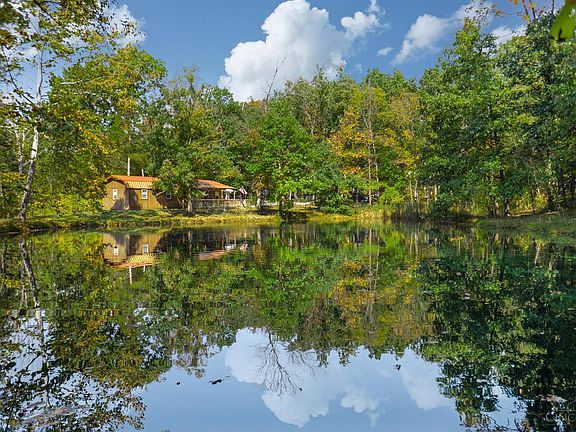 Don't miss this private retreat! 15 Acres with 2 cabins! The main cabin has 2 bedrooms, office, eat-in kitchen, living room, front enclosed porch that can be used for extra living space! The 2nd cabin overlooking the pond has an open kitchen/living room area, bath & one bedroom. This cabin is perfectly nestled right in front of the pond, sit on the covered porch and enjoy! Pond is stocked! There is also 2 additional camper hookups! This property has too much to list, schedule a viewing to see all it has to offer! So much potential for vacation rentals as well!