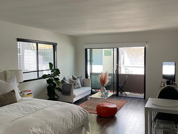 Steps to the beach... completely renovated modern four unit building. Beautifully kept on a quiet walk street in the very desirable Marina Peninsula. Rear Studio unit available. Full bathroom with Kitchenette including all new appliances. Very clean Brand new wood laminate floors and balcony off of the back. Laundry room. 1 car parking included and guest parking in front of building. NO PETS! owner pays for water and gas