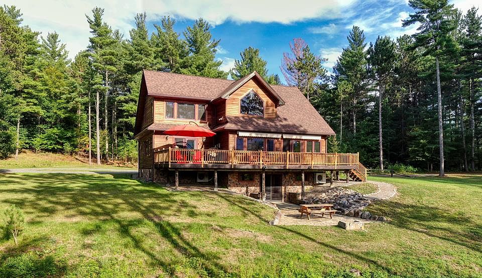 Majestic Adirondack style home with all the amenities and in impeccable condition. 3 beds, 3 1/2 baths with en-suite master on main floor. Top of the line craftsmanship and care went into design and build. Large kitchen with ample storage space with exquisite Oak cabinetry. The kitchen has granite countertops and stainless steel appliances including a Wolf gas chefs cooking range/oven. Enjoy the mountain views from the expansive decking or the stunning living room with vaulted ceilings, wall to wall windows and gas fireplace. Lower level finished by local Craftsman John Viscome to include a family/tv room and game area with bar and separate sink which easily be converted into a 4th bedroom suite with a walk-out and patio. Open floor plan great for entertaining. Many other features including central air conditioning, central vacuum and full house generator. Over 3 acres with complete privacy and convenient access to Lake Placid and Whiteface Mountain. Sold mostly furnished.