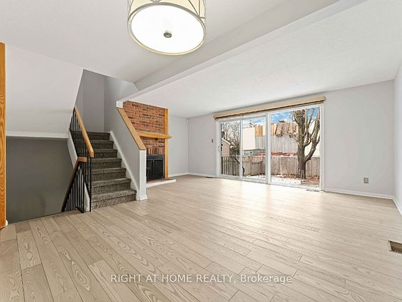 Fantastic semi-detached family home attached only by the garage, offering comfort, privacy, and an unbeatable location. Enjoy no rear neighbours, a fully fenced backyard, and beautiful interlock landscaping in both the front and back. Step inside to find new hardwood floors throughout the main and second levels, an updated full bath and powder room, and all PVC windows for improved efficiency. The bright eat-in kitchen is perfect for everyday meals, while the dining room opens seamlessly to a warm and inviting living room featuring a wood-burning fireplace and large windows overlooking the private yard. The fully finished basement adds valuable living space, complete with a 2-piece bathroom, a versatile den, and abundant storage options. Located on a quiet, family-friendly street, this home is within walking distance to several schools, shopping, parks, the recreation complex, and public transit just steps away. A wonderful opportunity to own in a convenient and desirable neighbourhood. Some of the photos are virtually staged.
