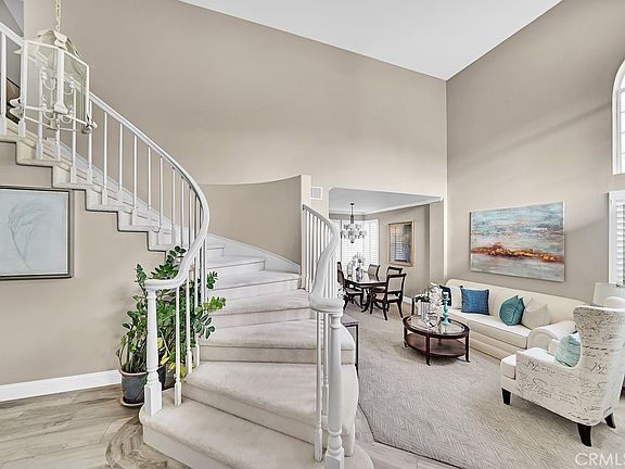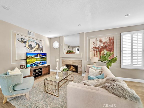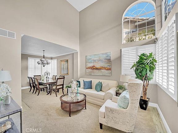 Immaculate condition located at premium cul-de-sac location with soaring cathedral ceilings on both levels *** Newer porcelain and luxury vinyl flooring with neutral carpet, crown molding, plantation shutters, designer paint, elegant fireplace, dedicated inside laundry room, and more *** Open kitchen with solid quartz countertops, walk-in pantry, sit-up peninsula island, recessed lighting, premium venting system, five burner, built-in cooktop, water filtration system including instant hot water, view window, custom pendant lighting, premium stainless steel appliance package including Bosch oven and microwave plus heated drawer, wine chiller, soft-close hinges and stained glass antiqued cabinetry with halogen lighting *** Four full bedrooms, each with professional closet organizers, mirrored wardrobes, new luxury vinyl in both upstairs bathrooms *** Light and bright primary bathroom includes dual sink vanity, separate shower and soaking tub plus walk-in closet *** Large and private backyard provides the perfect balance of hardscape and natural lawn for backyard events plus a remote control awning *** Enjoy resort style amenities and close proximity to acclaimed school system.