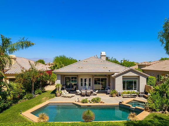 LEASED JAN 15, 2025 - MAY 31, 2025. Beautiful, turn-key furnished home in the gated community of Mira Vista at Mission Hills. This former model home sits on one of the most premier lots, taking advantage of million dollar views from both inside and out. The Escondido floor plan offers 2,331 sf with 3 bedrooms, 2 bathrooms, great room with gorgeous furnishings and granite fireplace, custom wood coffered ceiling, and wet bar. The granite kitchen with island, nook, and breakfast bar has been updated with espresso stained cabinetry and opens to the great room. The rear yard offers a breath taking panoramic view of multiple golf course fairways, lakes and mountains, and goes on forever! The covered patio offers great shade while the pool and spa maximize complete sunshine and feature Solar heating. The extensive use of natural stone, elegant lighting, custom woodwork and divine fabrics is certain to impress pure joy. It's rare that a desert gem like this becomes available, do not miss out!NOTE: There may be variation in prices which is reflection of our flexible pricing structure. Our pricing model is designed to accommodate different lease durations and months. For instance, if someone opts for a one-month lease, the price will differ from someone seeking a 3 to 4-month lease, and further variations exist for 6, 7, 9, and 12-month leases. Due to these nuances, it's challenging to provide a fixed price upfront. Instead, we tailor the pricing based on individual cases to ensure fairness and flexibility for each tenant's unique situation. owner pays HOA, cable and internet.