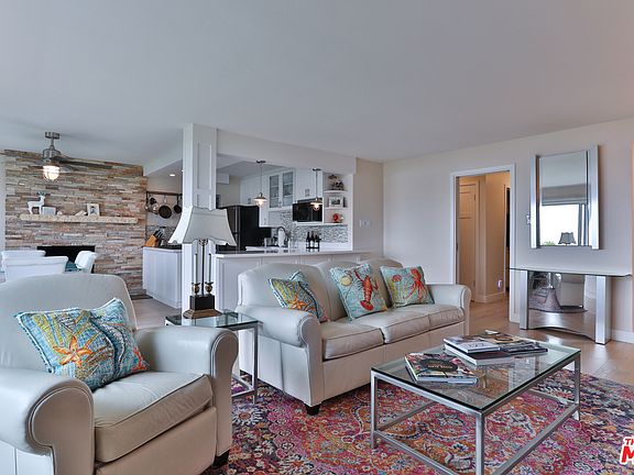Breathtaking unobstructed ocean, mountain, city and beach views from this completely remodeled, beach condo. An open floor plan with hardwood floors, dining room and living room with fireplace, large sliding doors that open to an enclosed balcony with grassy front yard. Designer finishes throughout, kitchen with stainless steel appliances, marble counters and custom tile, oversized master bathroom and laundry inside the unit. Arguably the best location in the entire marina, sit back relax and watch the sail boats go through the main channel, planes taking off over the mountains, unlimited sunsets and evening city lights. Rarely do units come up for sale in this building. Come and get it!