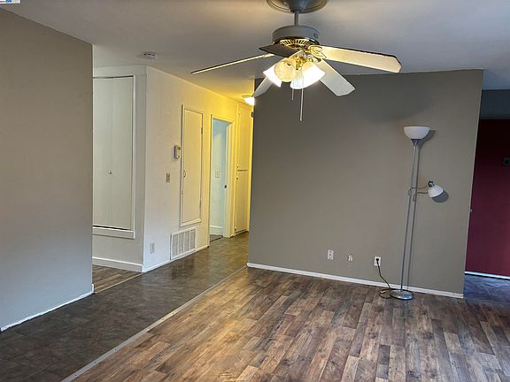 This end unit condo boasts 2 bedrooms, 1 bathrooms, a dining area and kitchen with new quartz marble counter tops. There's a community pool for you to splash around in on the hot summer days. Designated parking and a nearby on site laundry facility. This unit has washer and dryer hook ups ready for a stackable washer and dryer unit, just newly painted , and with a new laminated floor.