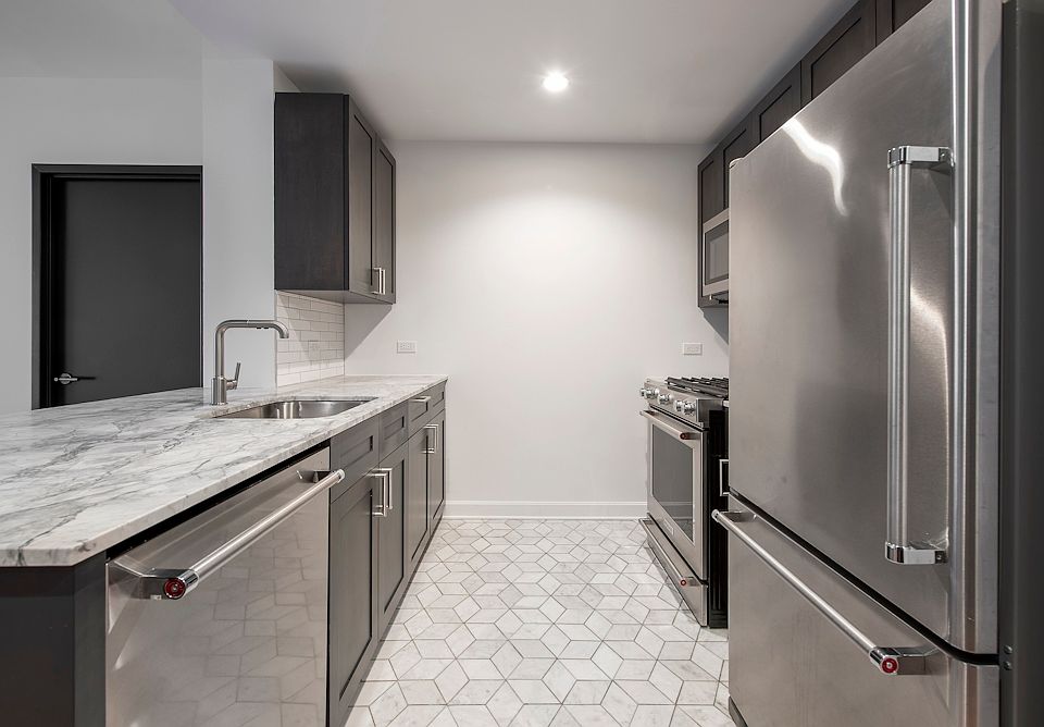 -Modern kitchens have custom mill-work, marble counter-tops and floors, walnut stained cabinetry
