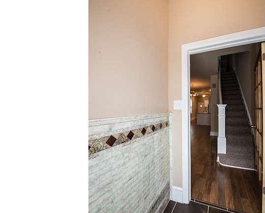 This home has beautifully rehabbed with wonderful amenities. 4 bedroom 1 1/2 bath brick row that features a front porch to enjoy and relax after a full day of working or you can sit on your rear deck that features a wonderful water fall. Enter through the vestibule that features the original beautiful marble tile and French door to the living room. The first floor interior is an open floor plan with wood flooring, recessed lights, ceiling fans, decorative fireplace, dining room and fully equipped beautiful kitchen; amenities are; stainless steel appliances, white cabinetry, granite counter tops, ceramic tile backsplash, electric stove, microwave, refrigerator and more. There is a separate laundry area equipped with washer and dryer a wonderful powder room with ceramic tile floor and walls. The second level has four nice sized bedrooms with ample closet space and a beautiful hall bath that features ceramic tile on the walls and floor and sliding doors over the tub. The basement is the length of the house, very clean and dry. This is a "MUST SEE" property and it is very easy to show.