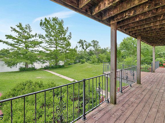 LAKE FRONT HOME. Lovely and spacious executive style home on Lake Waltanna in the Goddard School District. Lake Waltanna is a stocked fishing lake with boat access and the community is unique in that it has an air strip, community stables, tennis courts and playground. The main floor living room and dining room are very large each with expansive views of the lake, the very open kitchen flows to the dining room and has plenty of cabinetry. Off the kitchen is a large laundry room that could also be a sewing/craft/maker space/office any of which uses will appreciate the 4 ample storage closets in this room, plus a beautiful bay window to look out at the landscaping out front while working. there is a whole house vacuum. The main floor master suite has two large walk in closets, a private bath and leads to a sunroom with vaulted ceiling, skylight and has a hot tub. Upstairs are two large bedrooms connected via a jack and jill bath, each with walk in closet(s). Upstairs are two large attic storage spaces. The lower level is a walk out with very large family/rec room with a kitchen area that can be closed off, two large additional rooms a storm shelter that can also be a storage space, and a full bath. The lower level has large view out windows to enjoy the lake. Three car garage, and double level decks from main floor and second floor. No repairs will be made by the seller and this home is being sold AS-IS.