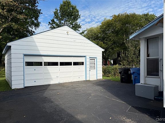 Charming ranch located in the West end of the City of Cortland. The two bedrooms are very spacious with nice hardwood floors. Livingroom is large with lots of light. There are hardwood floors under the carpet in the living room too! Eat in kitchen with access to the back enclosed porch and yard. The 2 car detached garage has a deep back yard behind it. Vinyl Siding and replacement windows. Basement offers you options for a large family/rec room or potential to add a bedroom and bath. Basement laundry, newer forced air heating system and water heater and circuit breakers.