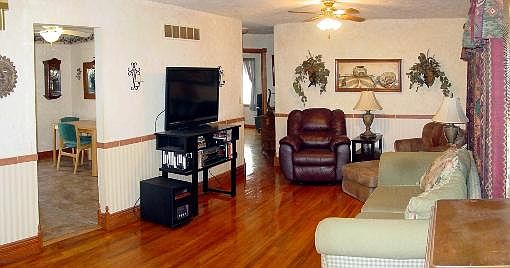 2 bedroom 1 bath home with a fireplace. Heat pump- heat and air- 92 % efficiency Timberline. Newer roof, wood windows- Renewal by Anderson. New stove, hardwood floors, eat-in kitchen, and fenced yard. Over sized one car attached garage. Steel siding. New line to the sewer. 8 x 16 storage shed with electricity. Crawl space. Nice deck. Low utilities per seller.
