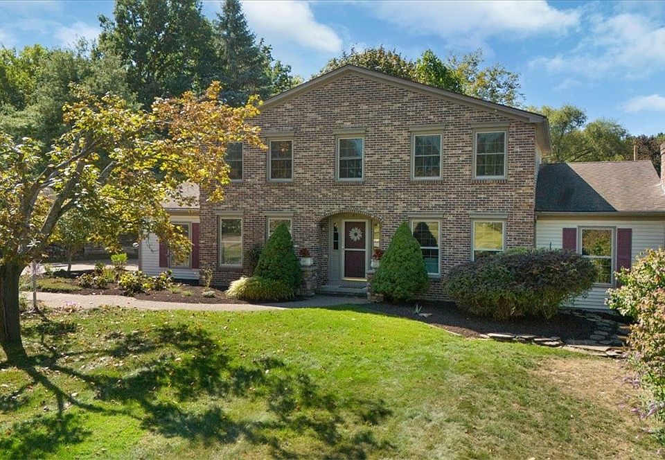 Exceptional Custom Home Near the Village of Fairport! Set on a picturesque ¾-acre lot in a highly sought-after location, this one-of-a-kind home was originally built by Tomax Homes for the builder himself. Just minutes from the Village of Fairport, the historic Erie Canal, Perinton Square’s shops and restaurants, and Wegmans, it offers both convenience and serenity. Featuring 4 spacious bedrooms, 2.5 baths, and a host of desirable amenities including * Gorgeous hardwood floors * Granite countertops * Skylights * Built-ins throughout * Central vacuum system * Office with separate entrance—ideal for remote work or a home business * Expansive sunroom addition with skylights & panoramic views of the private backyard with slope to the spring-fed creek * Inviting living room leading to library with Heatilator wood burning fireplace * 1st Floor laundry option * 2+ car garage with abundant storage * Newer appliances * Beautiful brick walkways & patios * Generous dressing room off primary bedroom * Screened porch for seasonal enjoyment * Highly coveted FAIRPORT ELECTRIC! Delayed showings Sept. 20th at 2pm. Open house Sun., Sept. 21st 11:00 AM – 1:00 PM. Delayed negotiations Weds., Sept. 24th begin at 12pm.