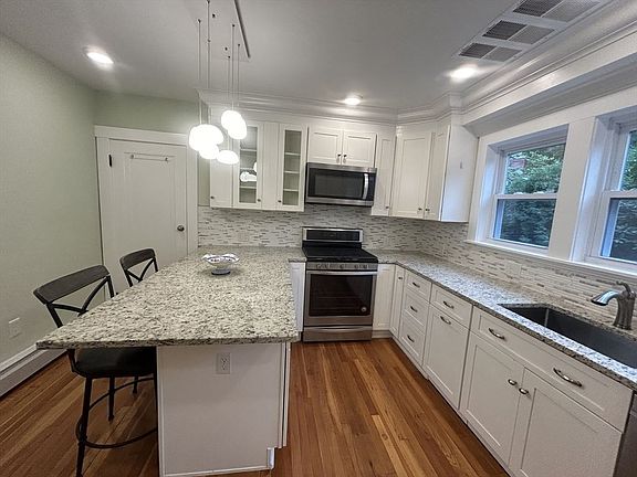 Welcome to this stunning two-bedroom apartment near Maplewood Square. Showcasing exceptional renovations that reflect the pride of ownership, this residence boasts a meticulously designed kitchen and bathroom where no detail was overlooked. The unit features gleaming hardwood floors throughout, enhancing its spacious layout. Enjoy a welcoming foyer, a formal dining room, a versatile sunroom/office space, and the convenience of an in-unit laundry area.