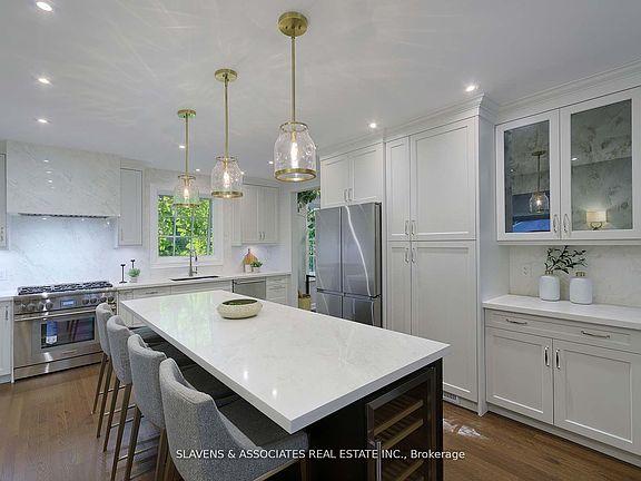 Set on a beautifully proportioned 50 x 120' lot in the heart of Upper Forest Hill Village, this distinguished detached residence blends enduring charm with thoughtfully updated contemporary living--perfect for the move-up buyer seeking space, value and a premier location. Offering 4 generously sized bedrooms and 5 updated baths, the home blends timeless curb appeal beginning with a classic red brick facade and landscaped gardens in a coveted neighborhood with effortless access to local shops, dining, the Crosstown LRT, Eglington west subway and the spectacular Beltline Train. Inside, a bright spacious layout unfolds with sun-filled living and dining rooms, main floor office and new standout custom kitchen anchored by an expansive quartz island designed for both chefs & entertainers. The kitchen opens seamlessly to a huge new family room with a walk-out to a private treed yard, creating a perfect flow for everyday living and outdoor enjoyment. Practical features including a mudroom, main floor powder and a high dug-out basement with walk-out, enhance functionality and future potential. Backing and siding onto neighboring homes for added privacy, this is a rare opportunity to secure a refined move-in ready home in one of Toronto's most sought-after school districts-including Forest Hill Collegiate, FH Junior and Leo Baeck Day School--outstanding value in the most coveted neighborhood.