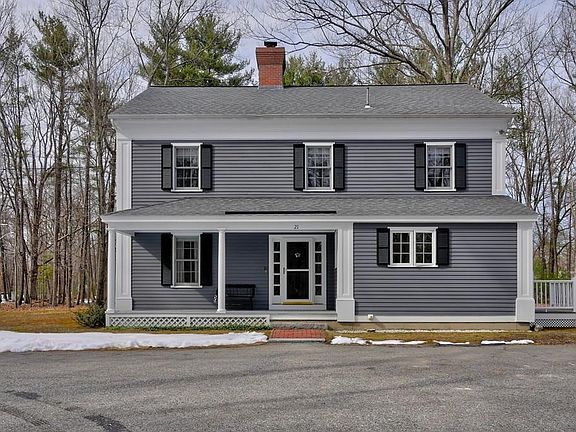 Local builder went to Vermont to learn to build an authentic Greek Revival home, and this is it! Fantastic curb appeal, architectural features and a great floor plan. Located on a level acre+ yard, you can enjoy Spring sitting on your front porch. Huge kitchen can accommodate an island or dining table. Step outside onto the deck to grill. The front-to-back living room has a beautiful wood burning fireplace and custom built-in's. Hardwood flooring, a spacious dining room and foyer, and half bath complete the first floor. Upstairs the master has a walk-in closet and private bath. 2 other good sized bedrooms and a walk-up attic for future expansion or storage. Central A/C, roof 2005, furnace 2010, meticulous one owner home! This is one of the prettiest parts of town, close to Heald Pond, the Nashua River boat ramp, Rte 119 and a great shopping plaza! Come make this home yours!