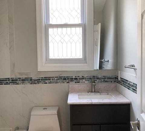 Be the first to live in this newly renovated 2 family : Choose a 1st floor 3 bedroom two bath split level luxury apt. with private entrance , central air , designer kitchen in open floor plan ,hardwood floors , laundry room in the apartment, deck and parking for two cars, $2995 or a 3 bedroom 1 bath 2nd floor with central air modern kitchen with stainless steal appliances, granite counter-tops, washer/dryer, parking for two for $2895, walk to train , buses, restaurants and schools, down the street to public park with free tennis and basketball courts , new playground and nature path. NO FEE No smoking. No fees, owner pays for water. renter responsible for gas and electric. no smoking. pets negotiable.