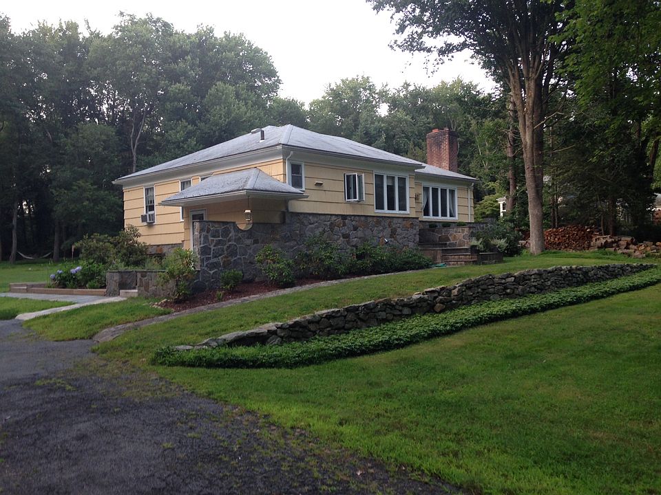 Bright and open stone and shingle ranch on perfectly flat 2 acres on a peaceful Pound Ridge country road. Charming corner built-ins in kitchen and new stainless appliances. Updated baths and hardwood floors throughout. Cozy living room with fireplace. Living room, patio and basement are wired for surround sound. Interior freshly custom painted. Thirty amp generator hookup. New boiler. Fabulous value on beautiful land in Pound Ridge. Easy commute from Stamford.