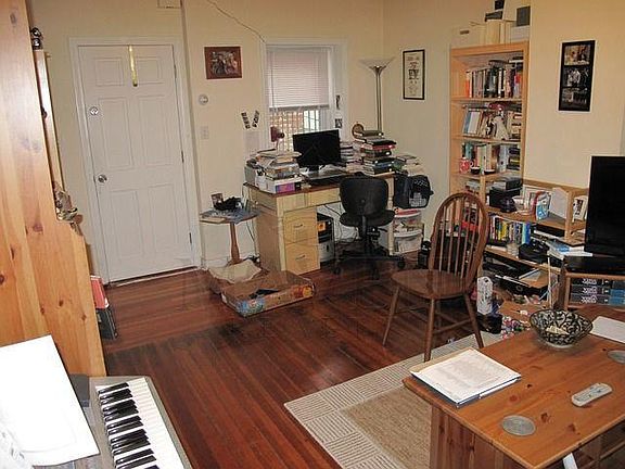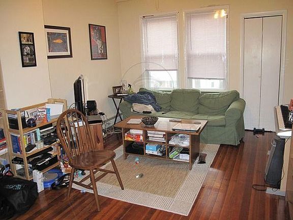 Ball Square area, 1 bedroom, 1 bathroom apartment. Has in-building laundry. The eat-in kitchen features an electric range. Key amenities include hardwood floors and a living room. Cats are negotiable. Reference MED-8170
