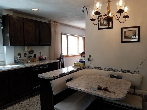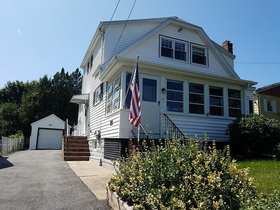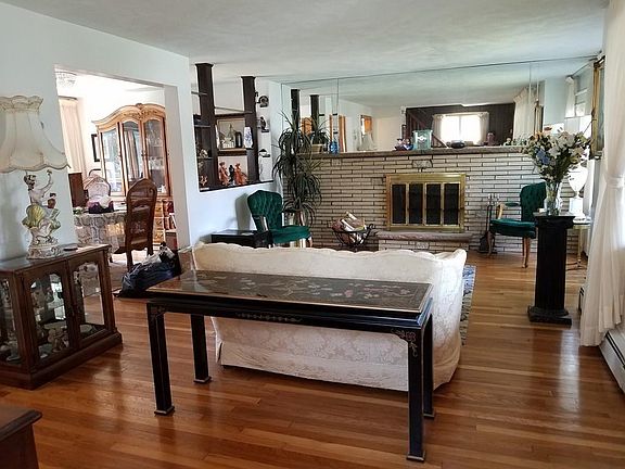 As you enter this nicely maintained home you enter thru a sun porch and into an open concept fireplace living room and formal dining room with hardwoods floors. Your kitchen features wood cabinets, double ovens and tile flooring. Second floor offers three good size bedrooms with hardwood flooring and a full tiled bath. Finished walk out basement offers a half bath and laundry hook-ups as well as storage. Fenced yard comes with a patio area, garage with electricity and plenty of parking. Bus to Boston is just a few steps away as well as schools and parks. Come take a look!