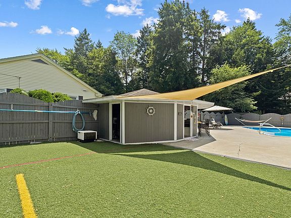 Located in the highly desirable Concord South End, this stunning turn-key home is nestled near schools, parks, and major highways. With over 2,000 square feet of living space, this home boasts 4 bedrooms and 2 additional bonus rooms on the lower level, providing ample space for a family room, home gym, playroom and office—perfectly catering to modern living needs. Step into the backyard and discover your own private tropical oasis featuring an expansive 18X36 inground pool, complemented by landscaping, a large deck and a fenced-in yard for utmost privacy. Entertain effortlessly with an outdoor covered bar equipped with kitchen cabinets and a fridge, creating an inviting space for gatherings and relaxation. Inside, the newly remodeled kitchen features a walk-in pantry, double oven, granite counters, and a central island that seamlessly opens to the dining room. Enjoy views of the pool area from the living room, accessible through triple French doors, while cozying up by the gas fireplace. Hardwood and tile flooring throughout the home add elegance and durability, while the 2-car garage offers ample storage space, complete with shelving and a convenient workbench. Upstairs, the 4 bedrooms include a master suite with a unique walk-up attic closet, providing extra storage options and enhancing the home's functionality.