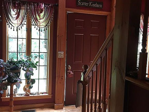 Custom, open timber frame Adirondack style home! Enter this picturesque, 1+ acre property by the 150' long, tree lined driveway approaching the over sized 2 car garage w/ bonus loft. Upon entering the home, you can look up and see all 3 levels bathed in bright sun by the skylight. A wide, wooden staircase, flanked by formal living & dining rooms, leads to each private level w/ 4 bedrooms, office and large storage space. Continue on to the open floor plan den & kitchen with 9' center island and granite floor. Hardwood floors & ceilings, exposed beams throughout the rest of the home. Basement features an in-law suite with chair lift. Geo-Thermal climate control system is extremely efficient. Central vac to the whole house sound system and much more. A must see home! Private showings only with proof of qualifications.