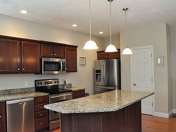 GORGEOUS!! Situated on a cul-de-sac, this professionally landscaped Winn Terrace townhome greets you with a two-story foyer. Built by Moss Development, this beautiful home features 1,850+ sq ft, three bedrooms, 2 1/2 baths, 9' ceilings, hardwood floors, three-sided gas fireplace, custom cherry kitchen cabinets, granite countertops, stainless steel appliances, two-zoned central air, security system, 2nd floor laundry, Transom windows, finished basement and more. Town water and town sewer.