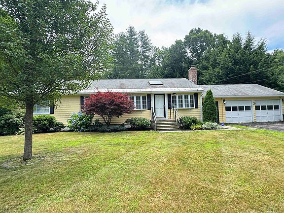 Charming 2-3 bedroom ranch with attached two car garage on a nice sized lot with a big private back yard! Large bright living room with hardwood floors, two large windows over looking the front yard and wood fireplace! Kitchen is a cook's paradise with granite counter tops, center island, walk in pantry, and tons of cabinets. Dining area is behind kitchen and has sliding glass door to covered deck space in back yard, hardwood flooring and a large window bringing is tons of natural light. Office is just off living room and has hardwood flooring, ceiling fan and built in cabinets. Could be used for a small bedroom. Master bedroom boasts hardwood floors, double closets, ceiling fan and an appealing master bath with double sinks and a luxurious walk in shower. The second bedroom is carpeted with ceiling fan and large closet. Large full bath with single vanity and built in storage is centrally located. Full basement that is partially finished, more storage space and laundry. Enclosed breezeway is perfect to be used as a mud room and allows access to the back yard, deck and covered porch without going through the house. If you have been looking for a smaller home on an appealing lot, look no more! Easy commuting being near Rte 10, Rte 119, and minutes away from MA border. Showings start on Friday July 19 with Open Houses at 4:30-6:00 and July 20th Saturday 10:30-12:00