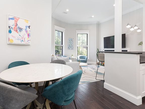 Experience the charm and sophistication of South End living in this parlor-level 2-bedroom, 1-bath condominium overlooking the iconic Worcester Square fountain. Offering 850 sq ft of well-designed living space, this home blends historic character with modern updates, featuring soaring ceilings, hardwood floors, and oversized bow front windows that flood the interior with natural light. The recently updated kitchen is equipped with stainless steel appliances, 42-inch cabinetry, and a breakfast bar that seats four, perfect for entertaining. A beautifully renovated bathroom includes two sinks, a soaking tub and contemporary finishes, while an in-unit storage closet provides added convenience. A private deck off the 2nd BR has updated trex decking. Nestled on a tree-lined square close to some of the best South End restaurants and cafes, galleries, parks and shopping, Silver Line T and BlueBikes stations close by.